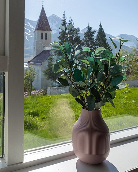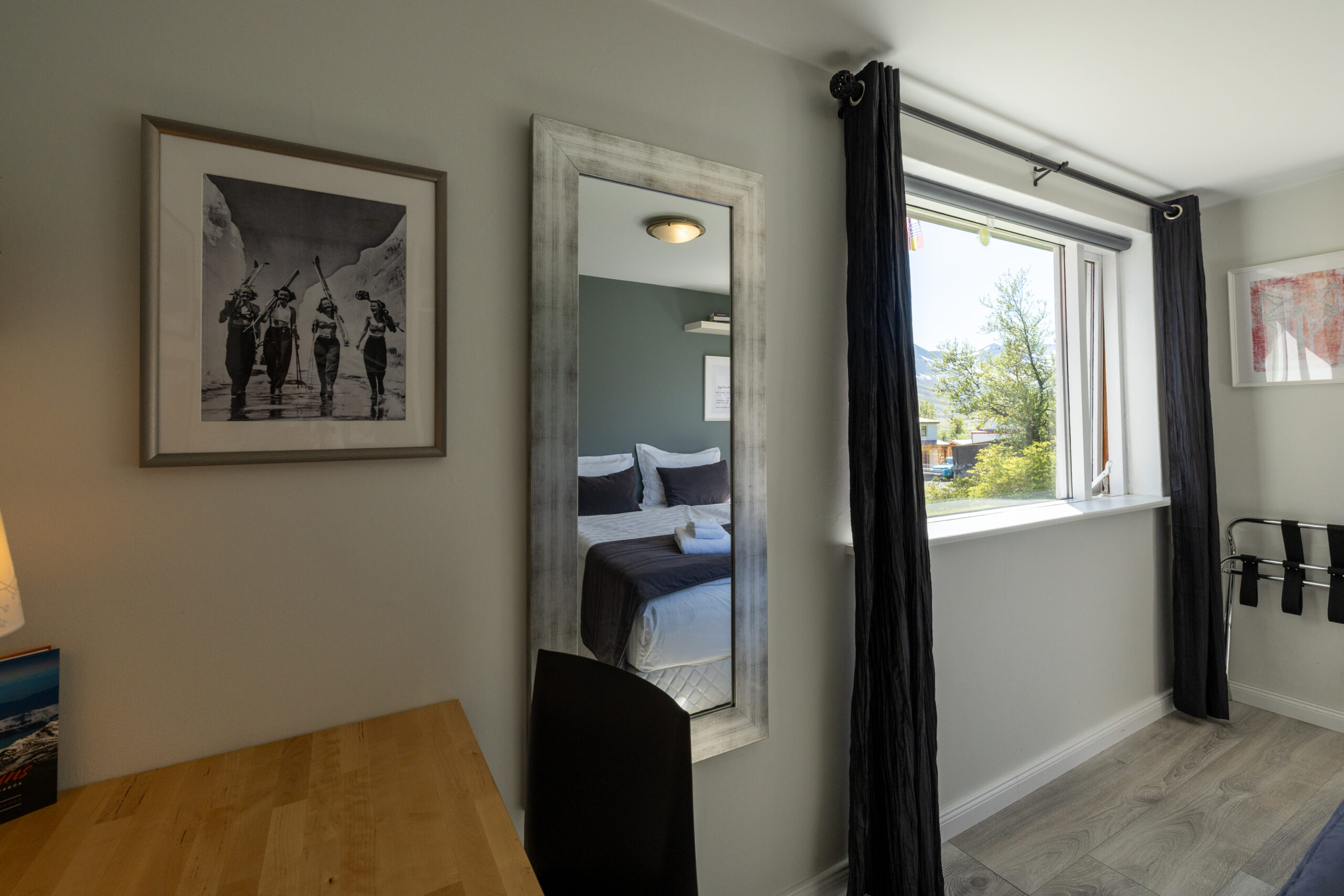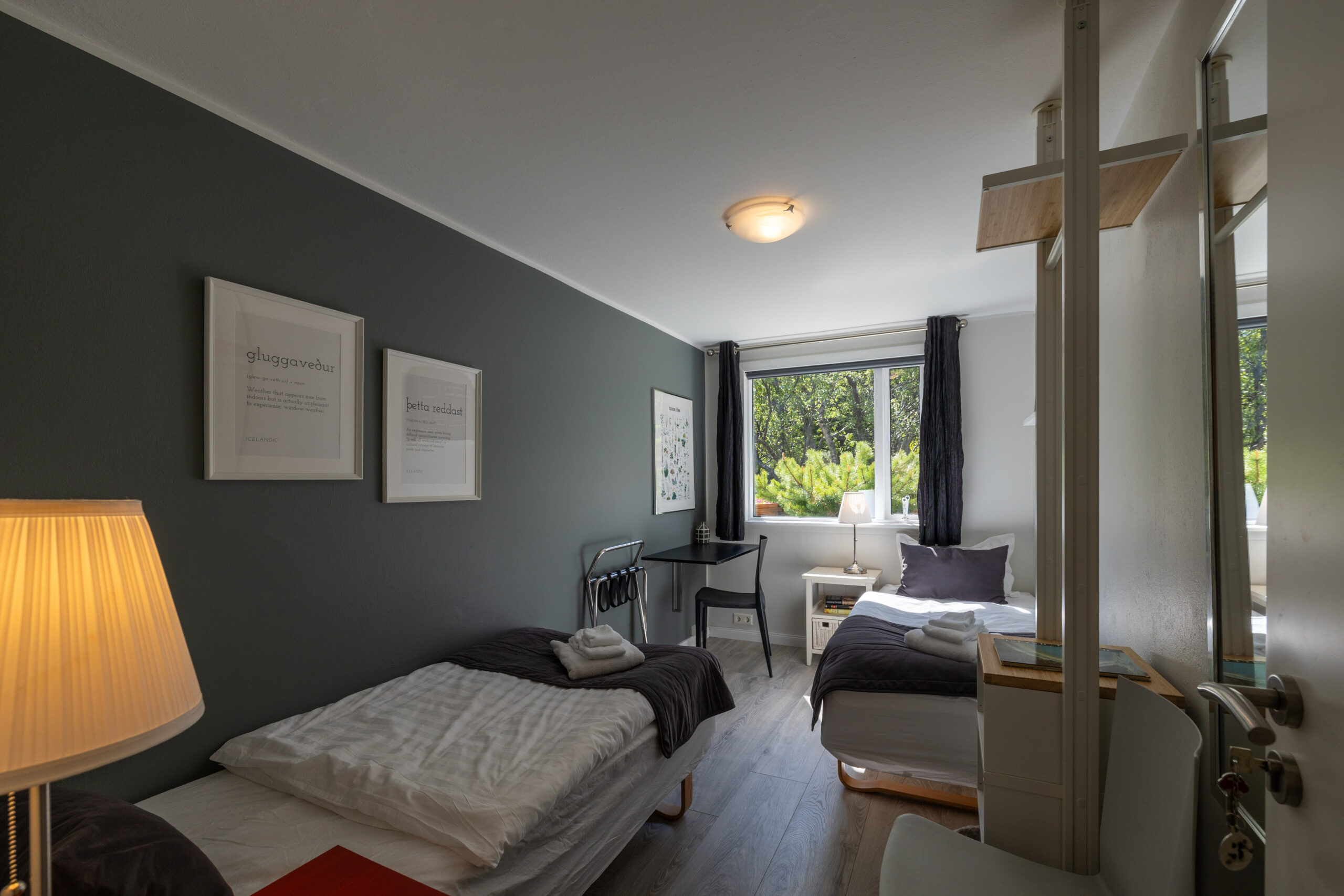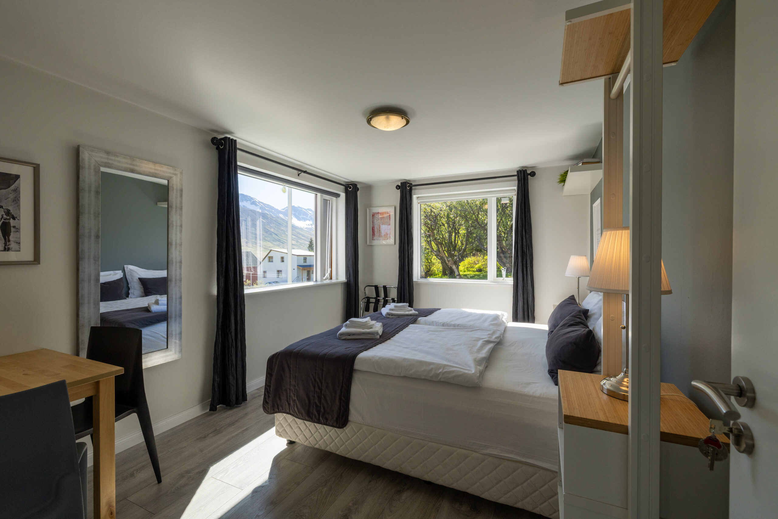Hlýleg og björt herbergi með útsýni yfir bæinn og kirkjuna eða garðinn. Fullkomin fyrir vini eða ferðafélaga (1–2 einstaklinga). Hvert herbergi er með tveimur þægilegum einbreiðum rúmum, mjúkri lýsingu og hlýlegum smáatriðum sem gera dvölina afslappaða og notalega. Sameiginlegt baðherbergi er frammi á gangi. Frábært val fyrir þá sem leita að þægindum, sveigjanleika og fallegum dvalarstað í hjarta Siglufjarðar.