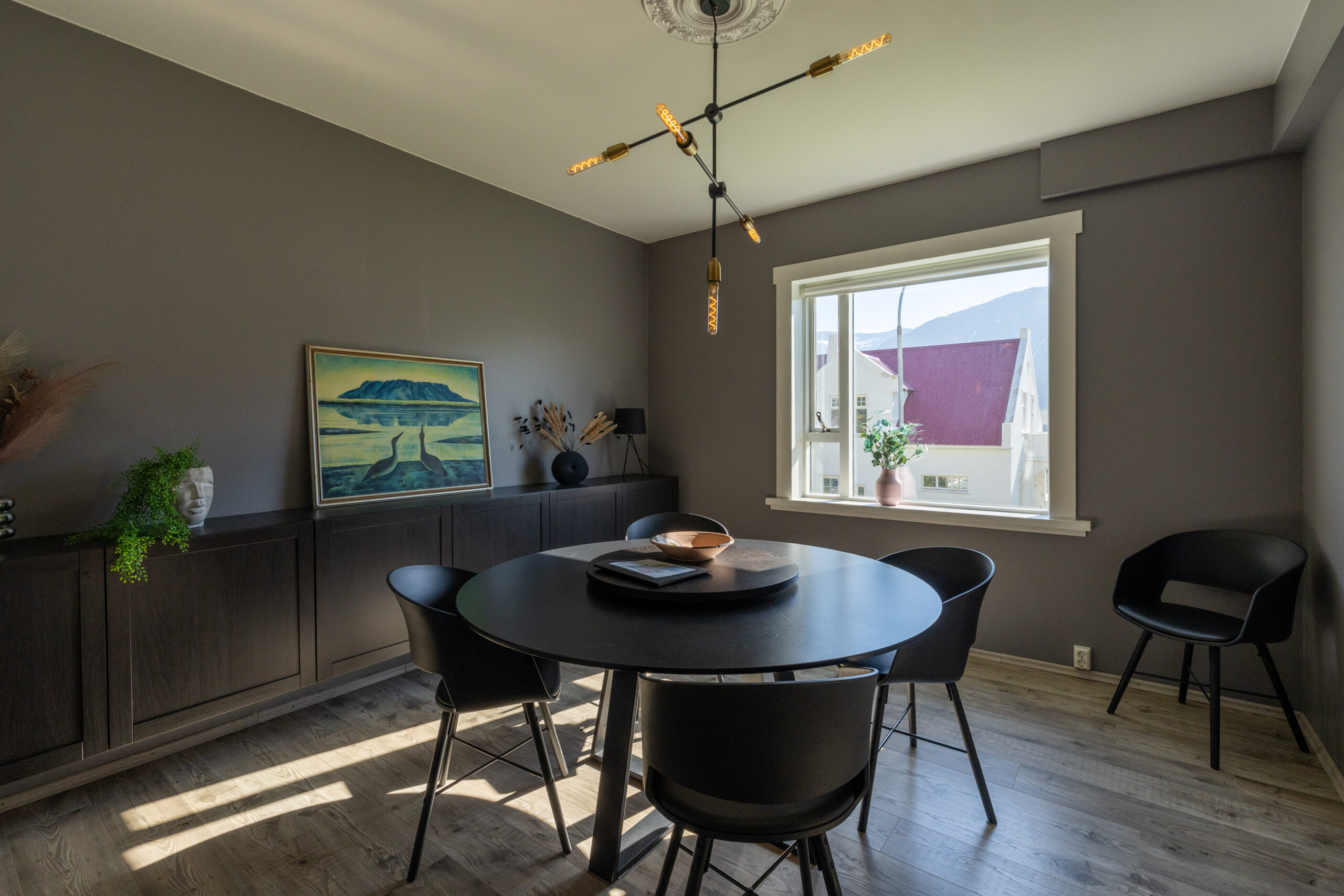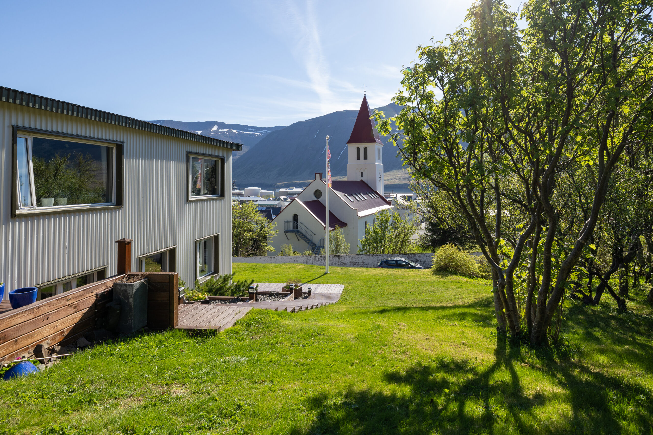 Björt og nútímaleg íbúð með fallegu útsýni yfir bæinn og kirkjuna. Tilvalin ef þú þarft meira pláss eða ert á ferð með fjölskyldu eða vinahóp. Íbúðin er með tveimur rúmgóðum svefnherbergjum, fullbúnu eldhúsi og þvottahúsi með þvottavél og þurrkara. Þægileg og hentug fyrir lengri heimsóknir eða sameiginleg ævintýri í Siglufirði.