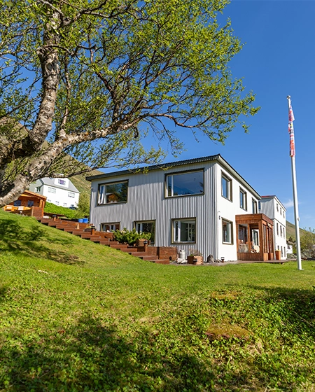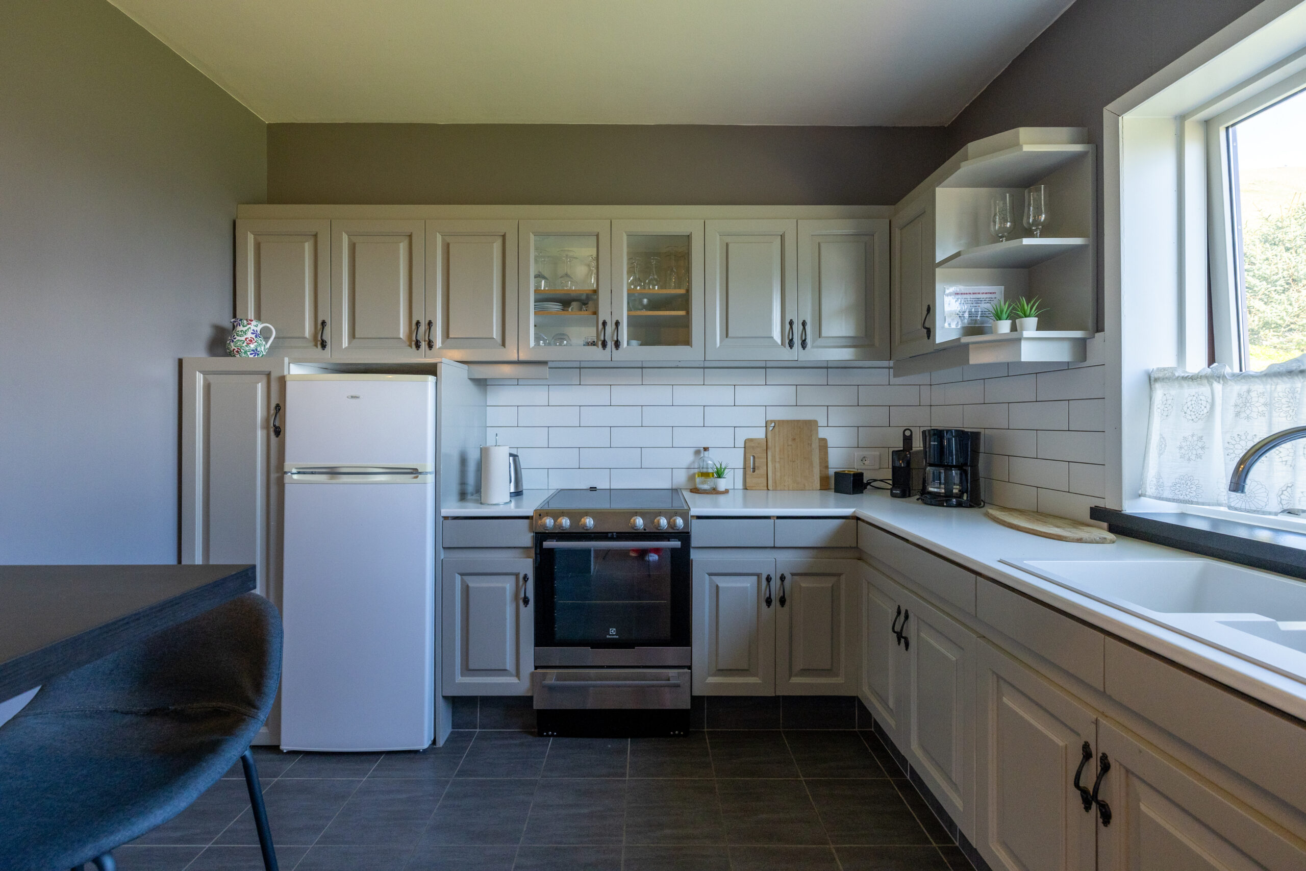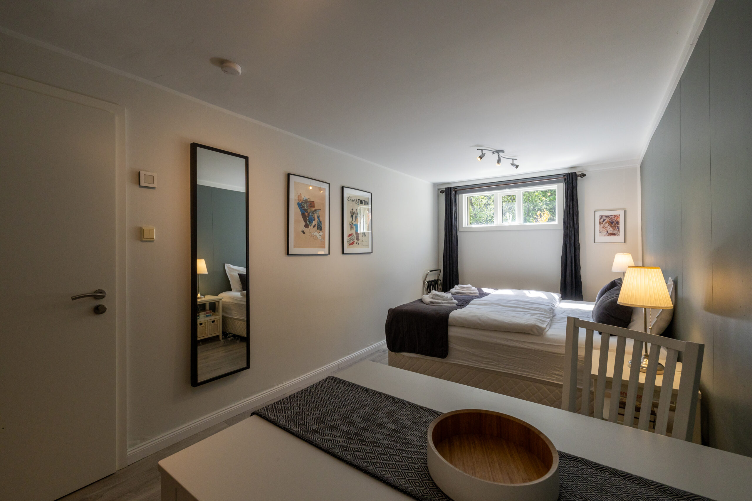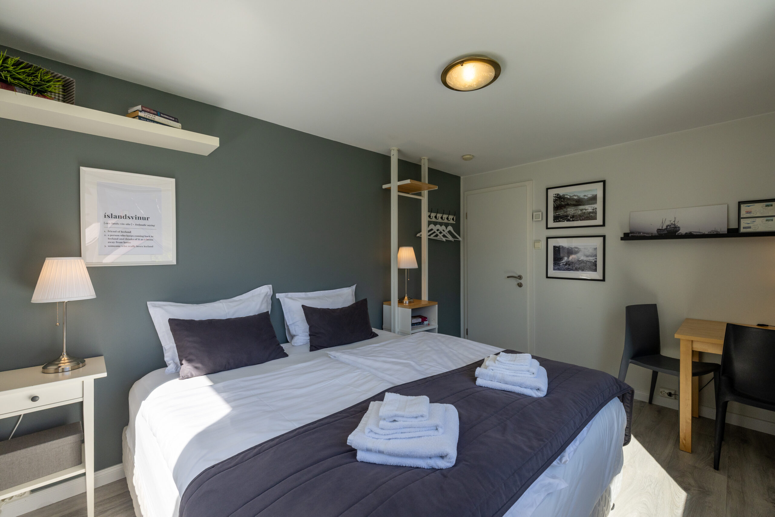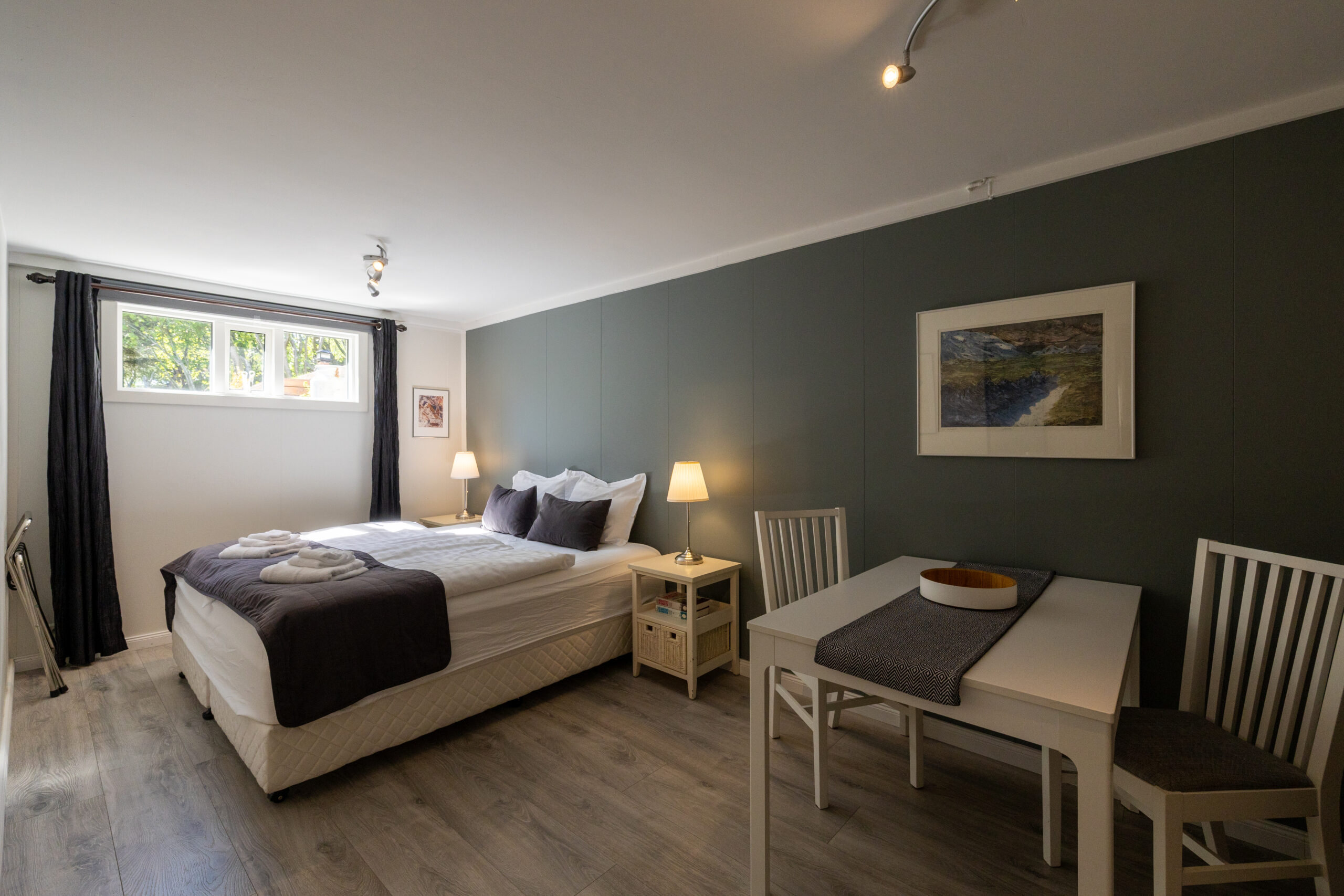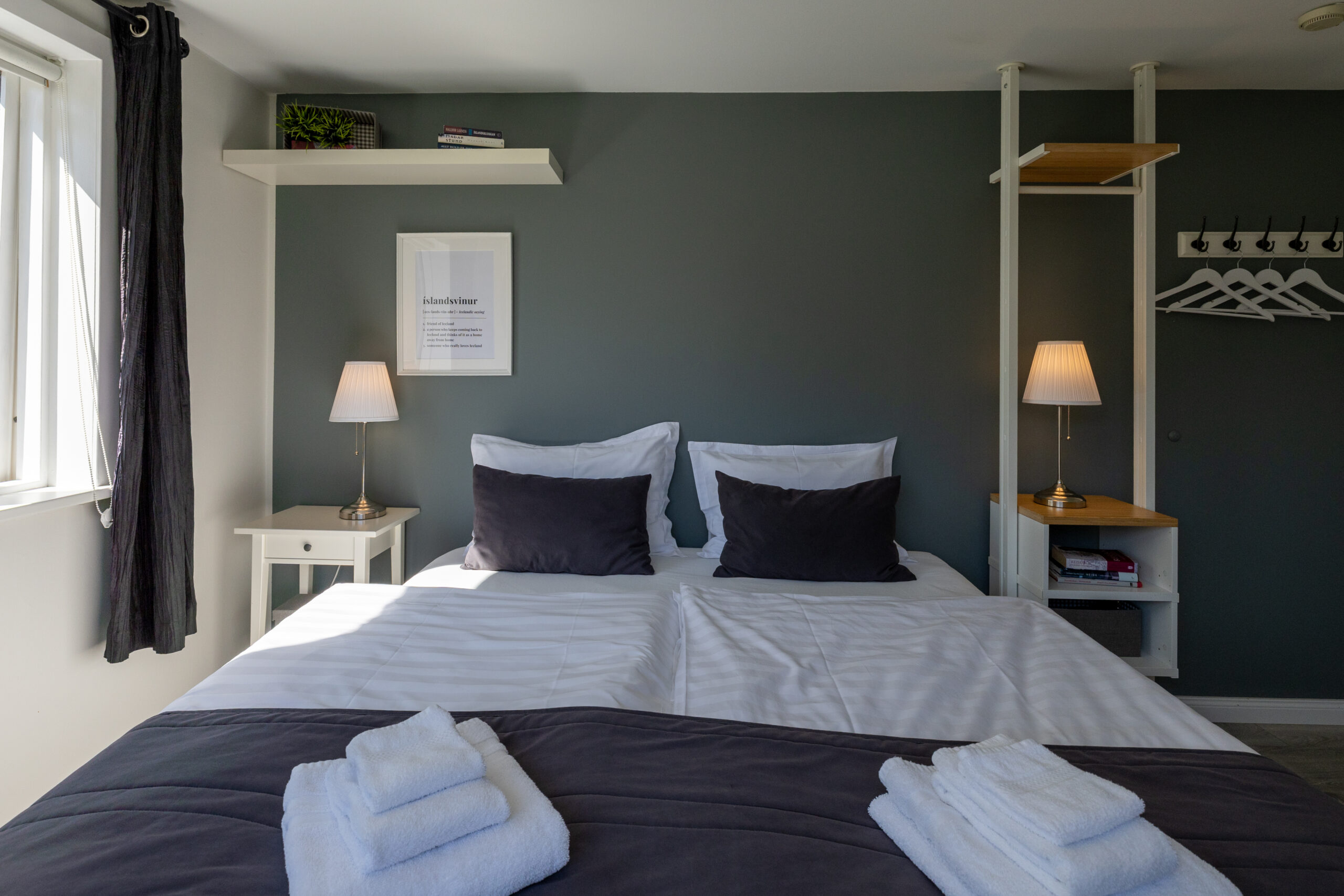 Veldu tveggja- eða þriggja manna herbergi á gistiheimilinu, gestahús fyrir meira næði eða fullbúna 2ja svefnherbergja íbúð.