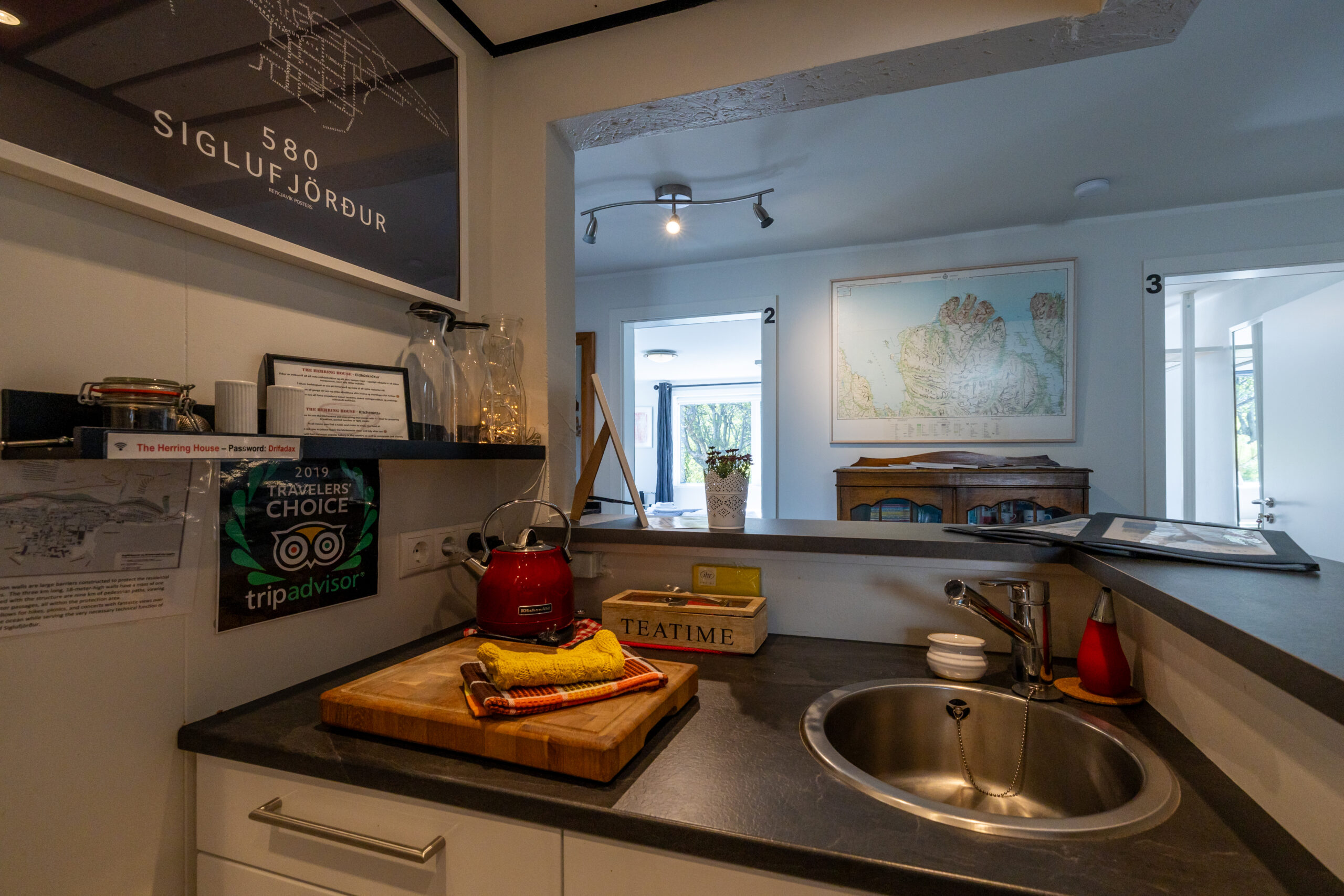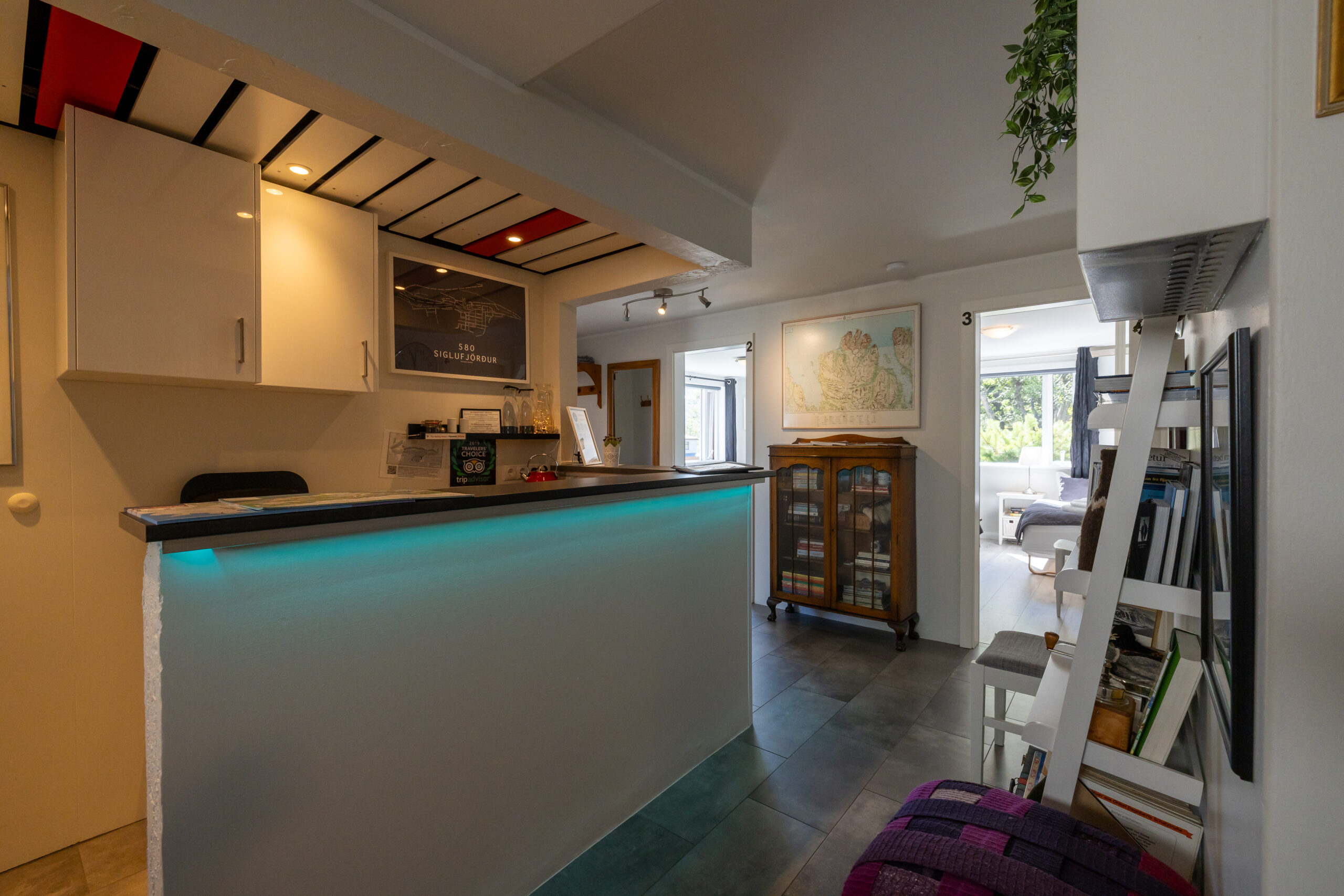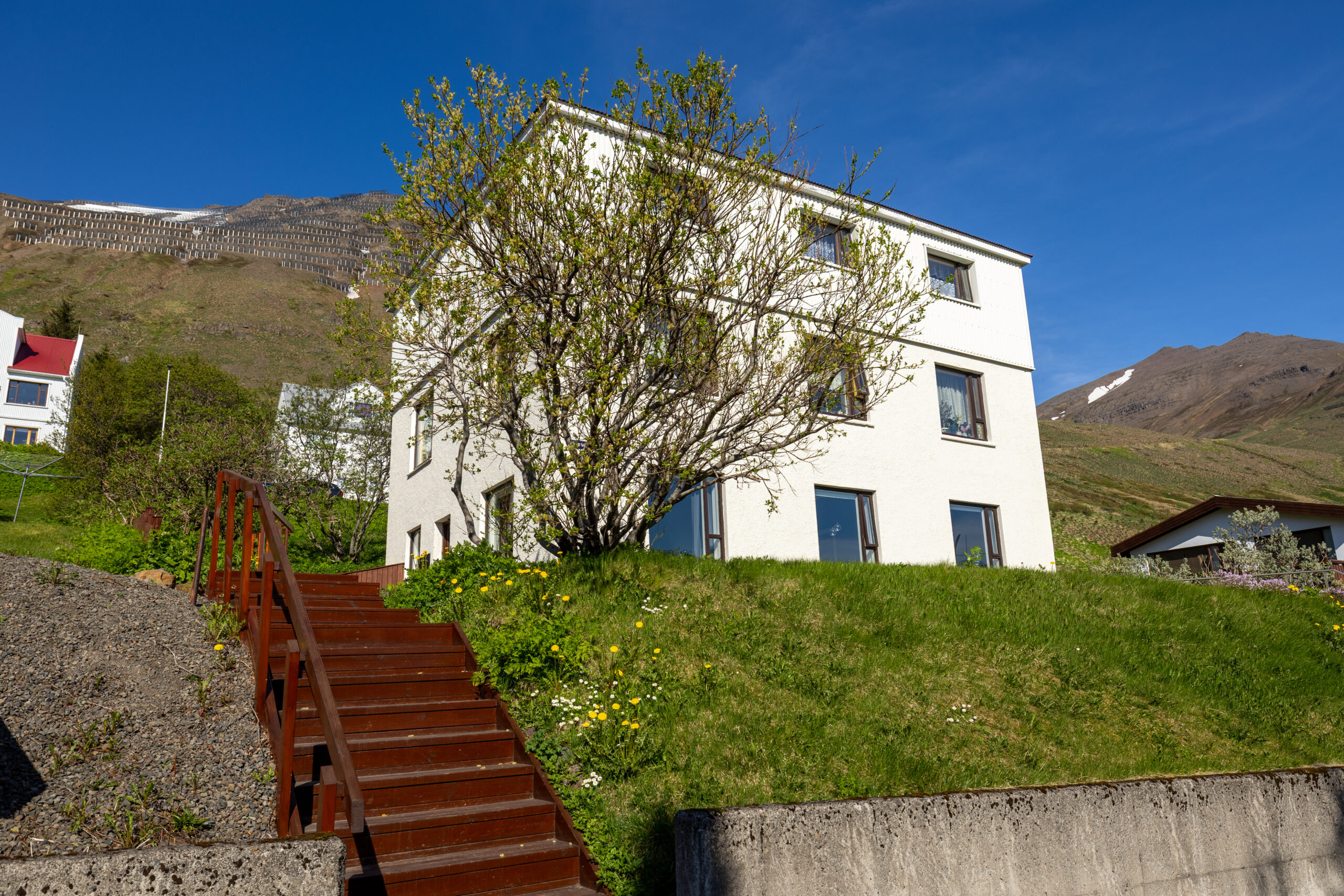 Ég vildi óska að við hefðum gist fleiri nætur í þessari íbúð, því hún var yndisleg. Við erum fjögurra manna fjölskylda og vorum að ferðast í gegnum Siglufjörð í eina nótt. Dagur tók á móti okkur í hellidembu um leið og við lögðum bílnum.