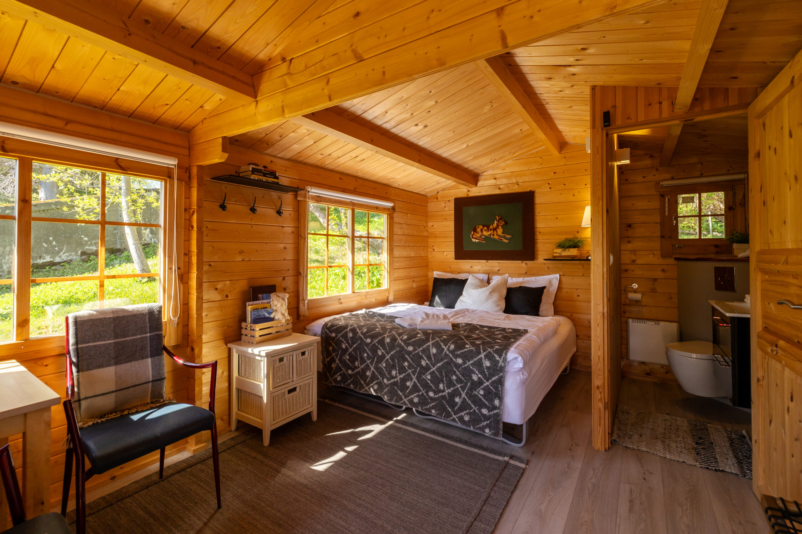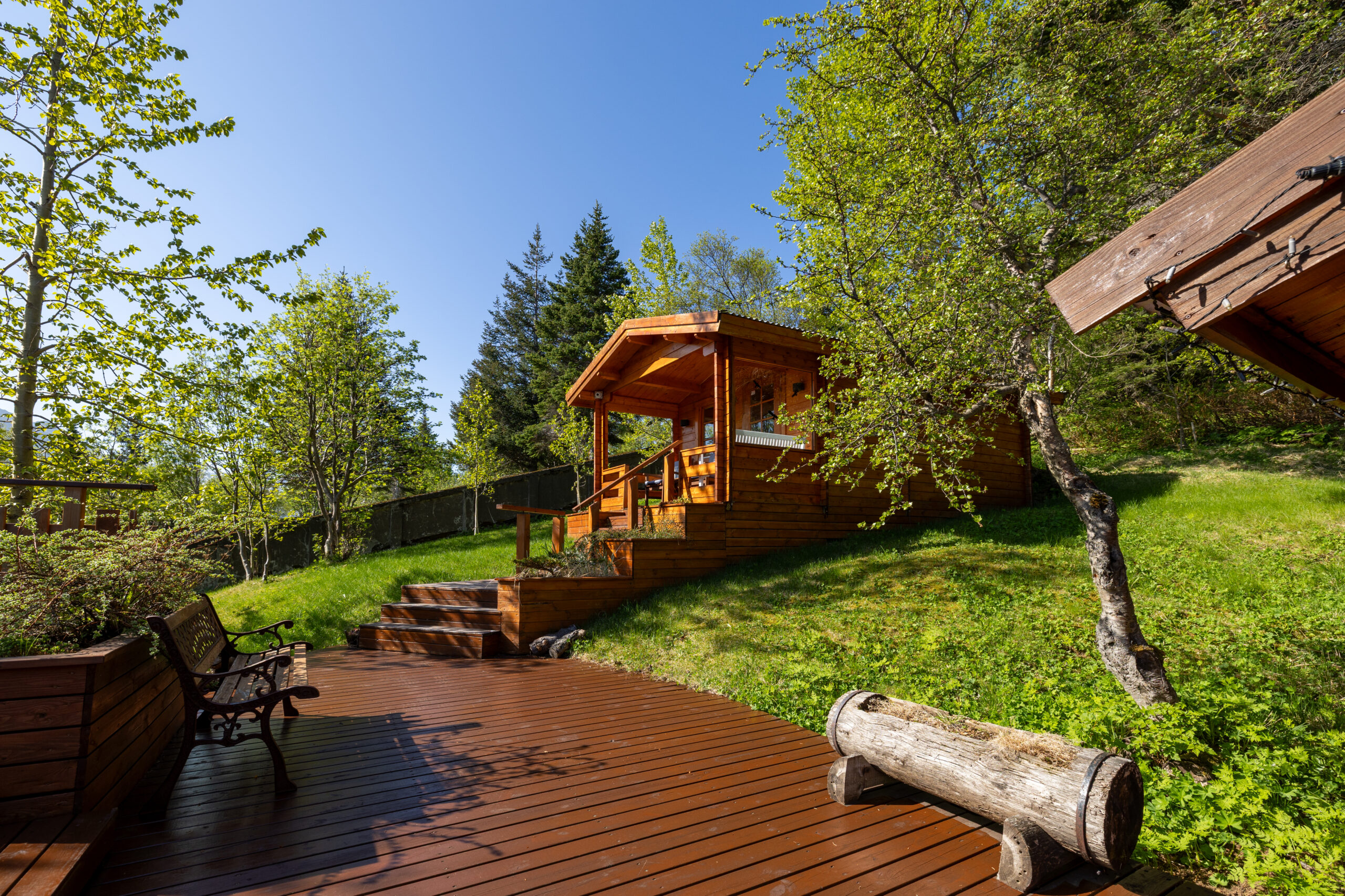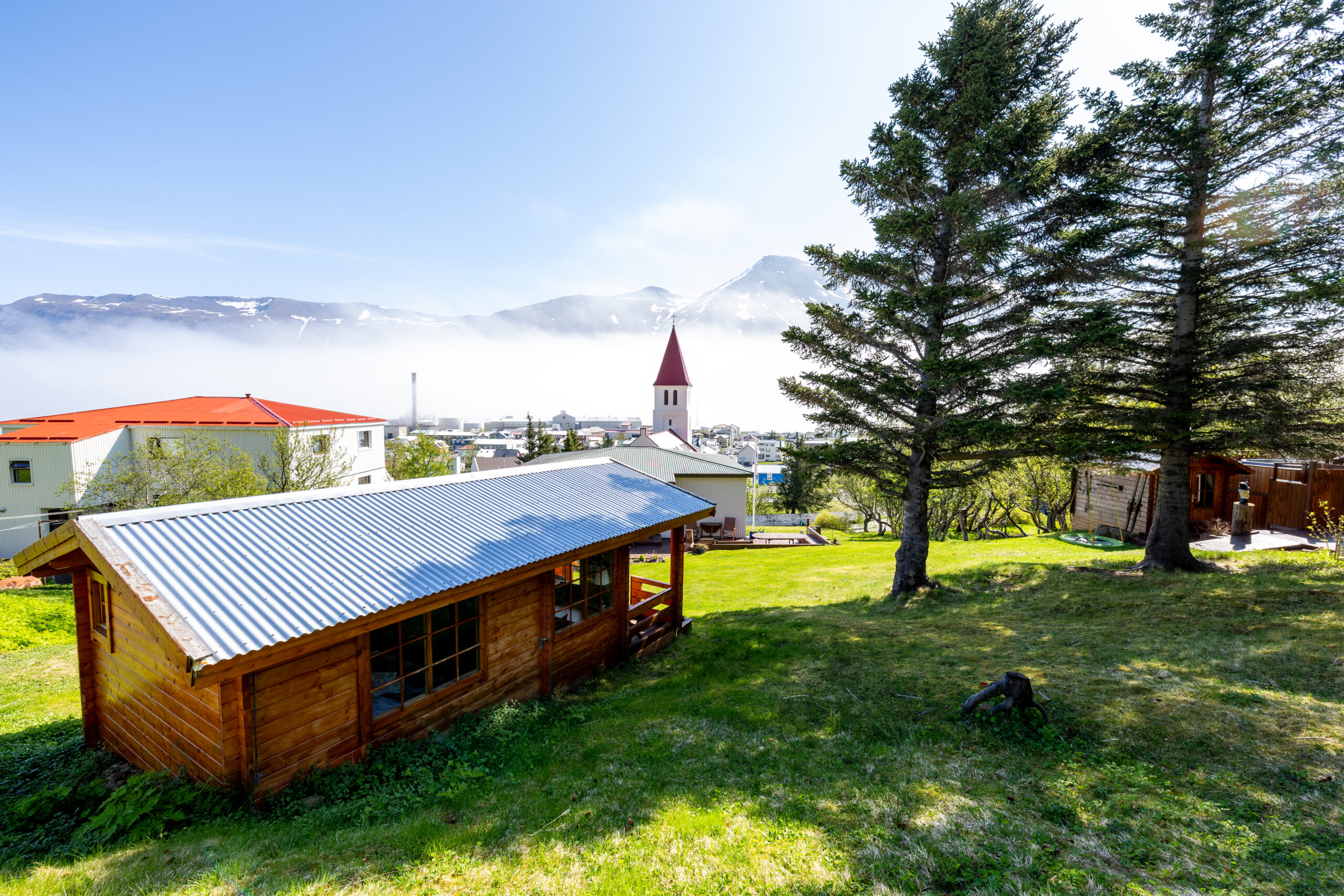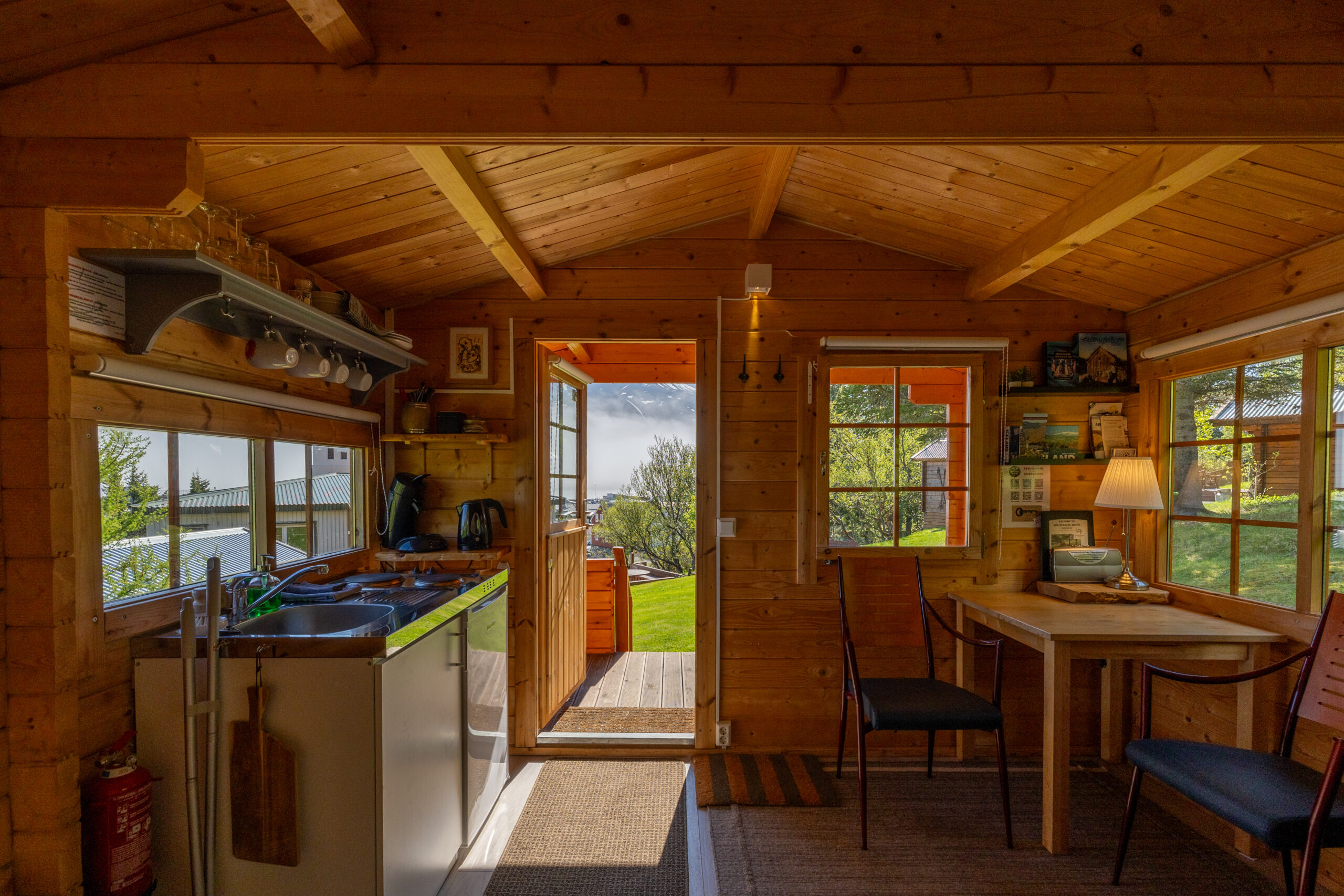 Hlýleg og einkar notaleg gestahús fyrir 1–2 gesti. Fullkomin fyrir pör eða einstaklinga sem vilja njóta kyrrðar í faðmi náttúrunnar. Úr húsunum er stórfenglegt útsýni yfir bæinn, fjöllin og kirkjuna, allt fyrir utan dyrnar. Hvert gestahús er með hjónarúmi, eldhúskrók, sér salerni og útisturtu ásamt litlu baðhúsi við hliðina. Gestir eru einnig velkomnir að nýta sturtuaðstöðuna á gistiheimilinu ef þess er óskað. Aðgangur að heitum potti er í boði – en vinsamlegast bókið með fyrirvara.
